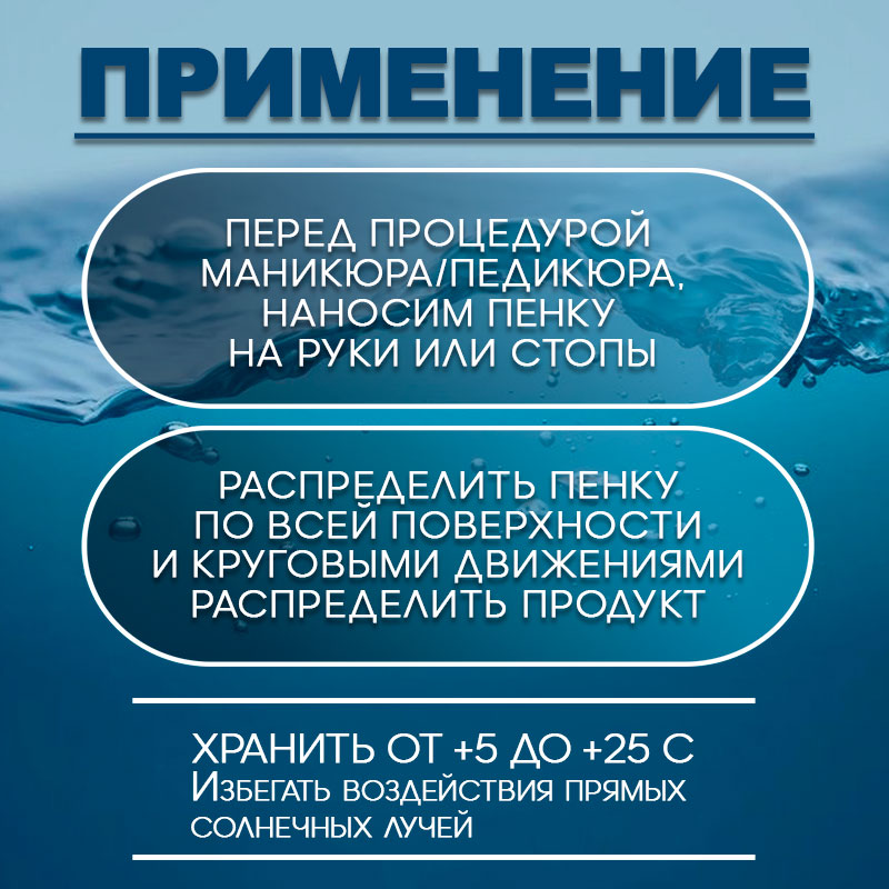 Очищающая пенка для маникюра и педикюра не требующая смывания. Натуральный состав включает мягкие ПАВ и экстракты лекартственных трав, которые обладают антибактериальными и успокаивающими свойствами. Это средство подходит для использования в салоне перед процедурой, а так же для повседневного использования, когда необходимо очистить и освежить кожу рук без воды, без смывания. Легкая пенка не оставляет липкости и следов на коже. Нанесите 1 порцию средства на ладонь или стопу и распределите руками, как будто нанесли крем. Пенка быстро впитывается, оставляя ощущение свежести, кожа становится увлажненная и мягкая. Пенка для маникюра отлично убирает пыль и остатки опила после аппаратного педикюра и маникюра. Идеально для красивых фото без фотошопа!